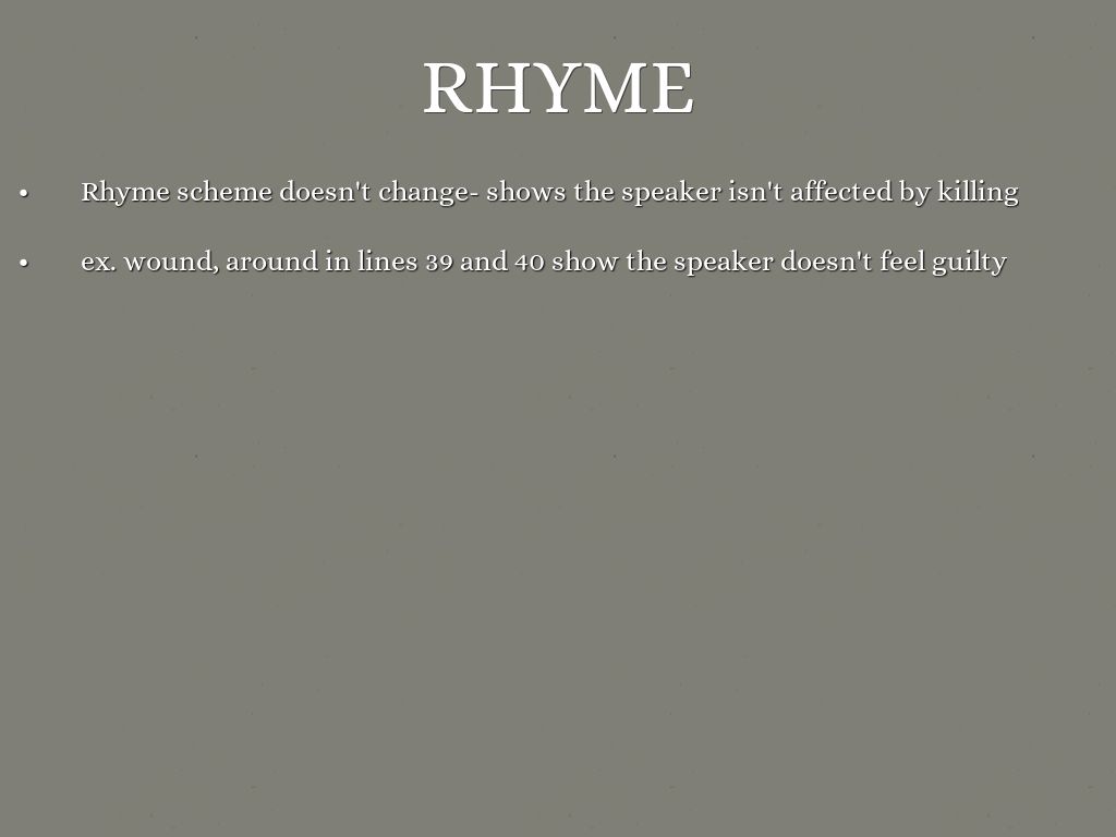 Rhyme scheme doesn't change- shows the speaker isn't affected by killing