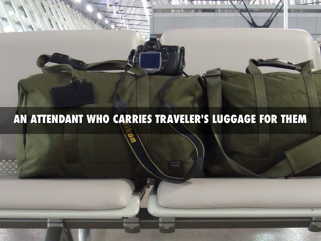AN ATTENDANT WHO CARRIES TRAVELER'S LUGGAGE FOR THEM