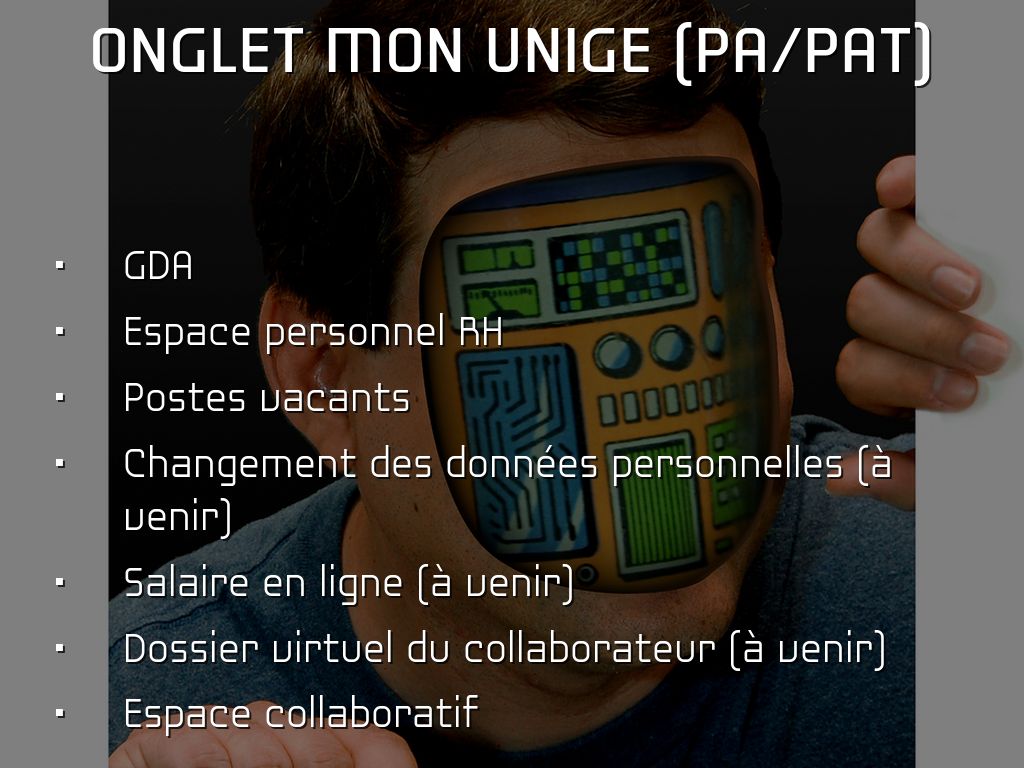 Présentation par Pierre-Yves Burgi (resp. service NTICE de la Divivion STIC) du portail institutionnel à la commission de personnel de l'Université de Genève, le 12 juin 2015.