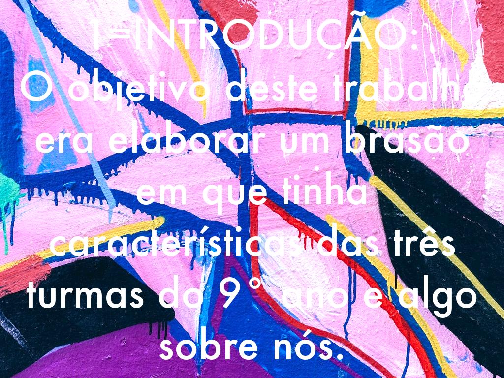 O objetivo deste trabalho era elaborar um brasão em que tinha características das três turmas do 9° ano e algo sobre nós.