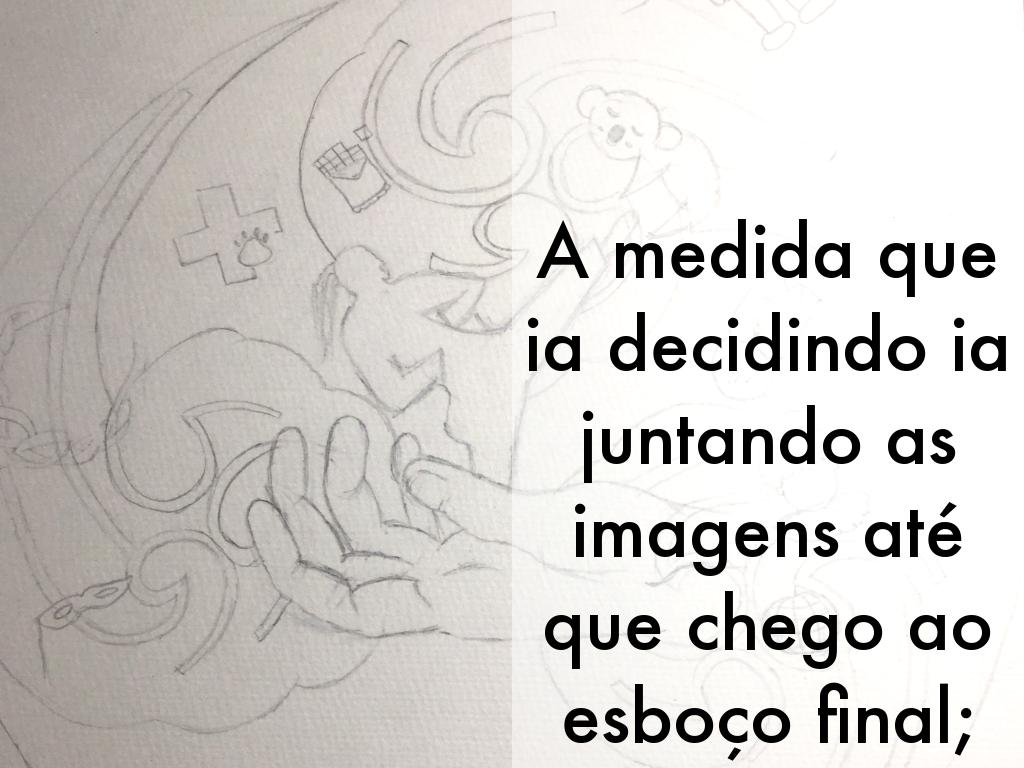 A medida que ia decidindo ia juntando as imagens até que chego ao esboço final;