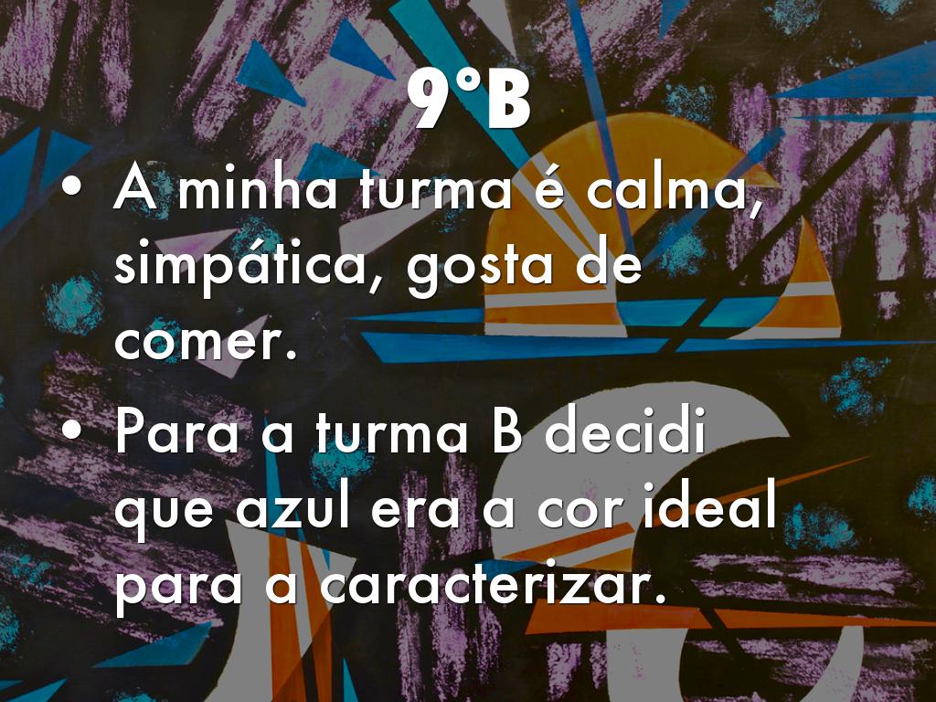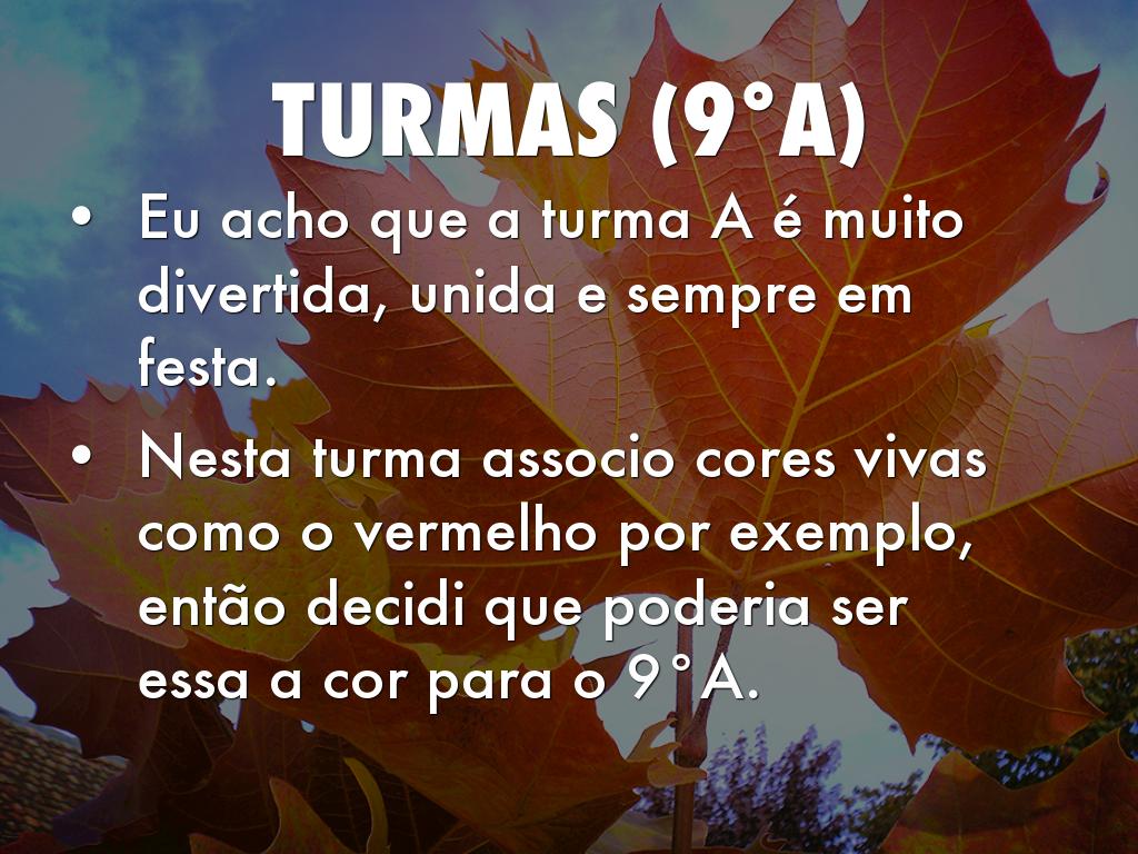 - Nesta turma associo cores vivas como o vermelho por exemplo, então decidi que poderia ser essa a cor para o 9°A.