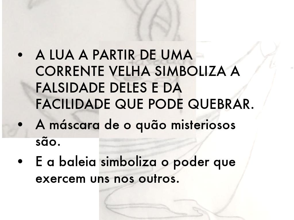 - A LUA A PARTIR DE UMA CORRENTE VELHA SIMBOLIZA A FALSIDADE DELES E DA FACILIDADE QUE PODE QUEBRAR.