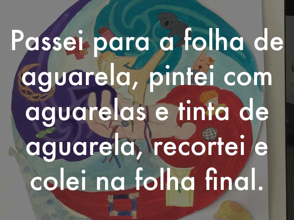 Passei para a folha de aguarela, pintei com aguarelas e tinta de aguarela, recortei e colei na folha final.