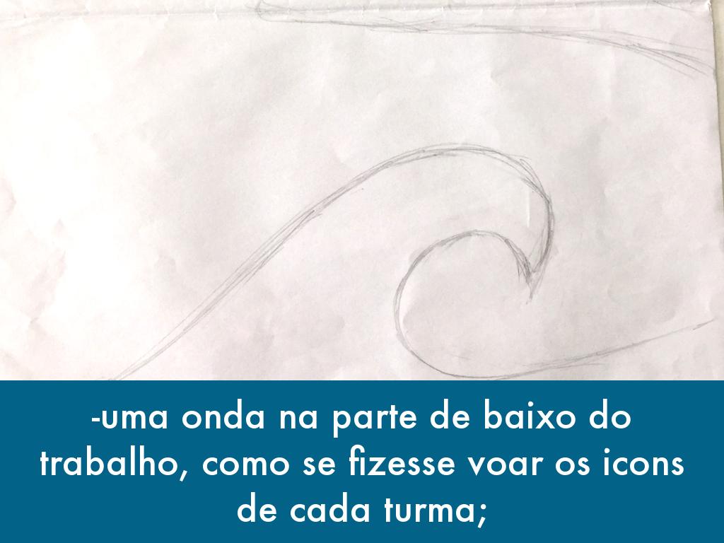 -uma onda na parte de baixo do trabalho, como se fizesse voar os icons de cada turma;