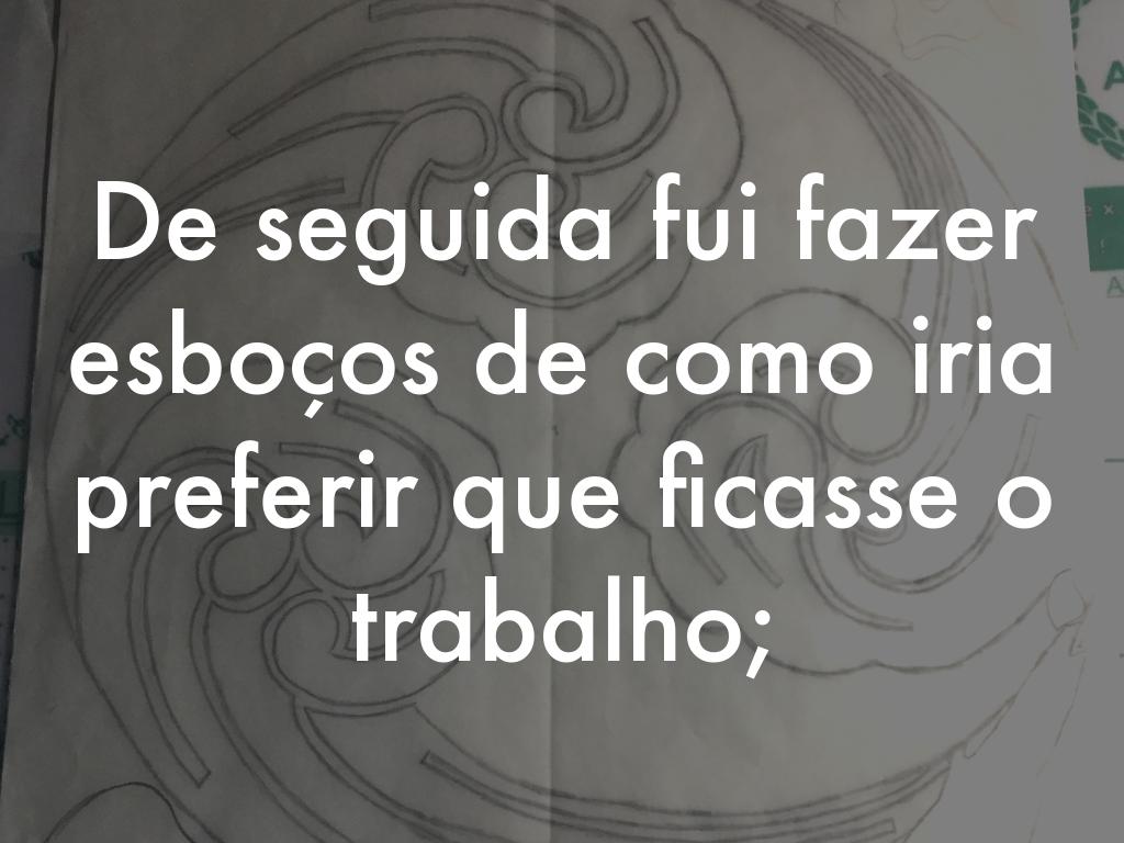 De seguida fui fazer esboços de como iria preferir que ficasse o trabalho;