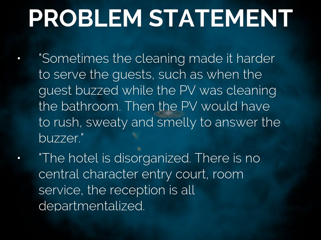 • "Sometimes the cleaning made it harder to serve the guests, such as when the guest buzzed while the PV was cleaning the bathroom. Then the PV would have to rush, sweaty and smelly to answer the buzzer."
