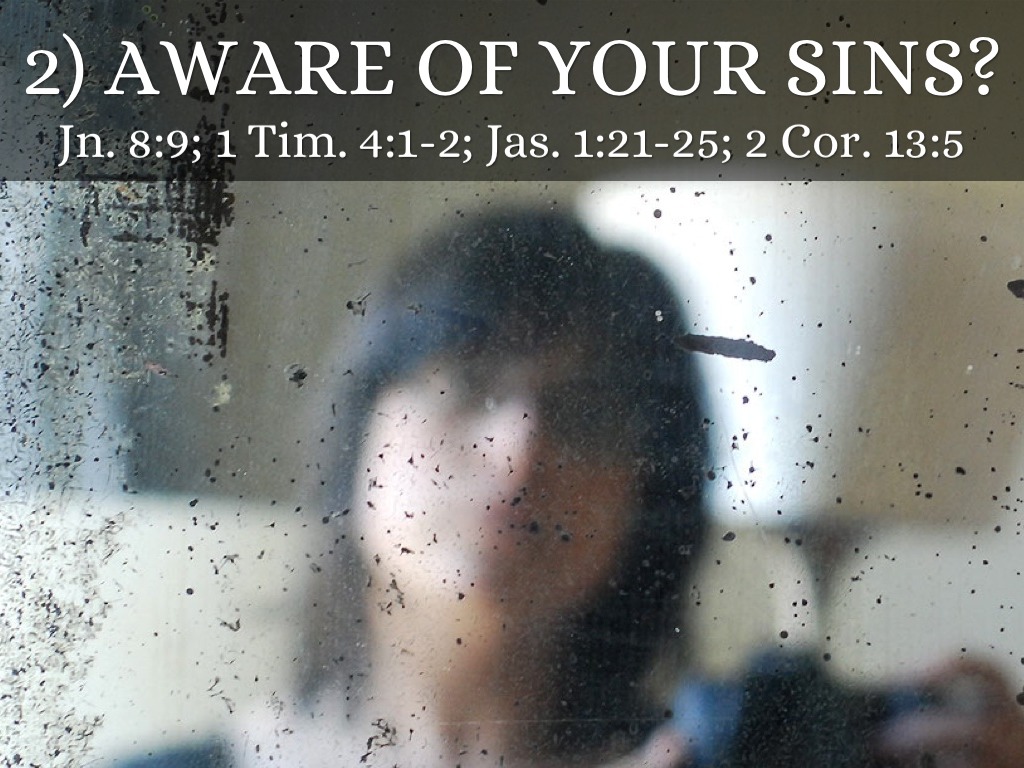 Jn. 8:9; 1 Tim. 4:1-2; Jas. 1:21-25; 2 Cor. 13:5