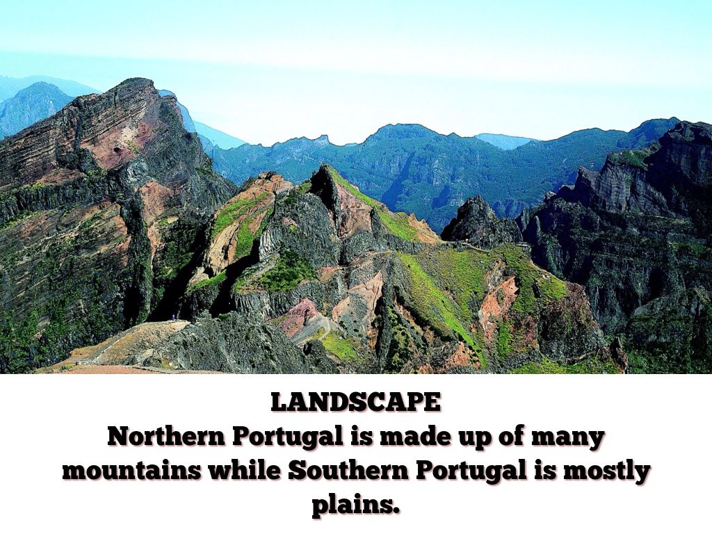 Northern Portugal is made up of many mountains while Southern Portugal is mostly plains.