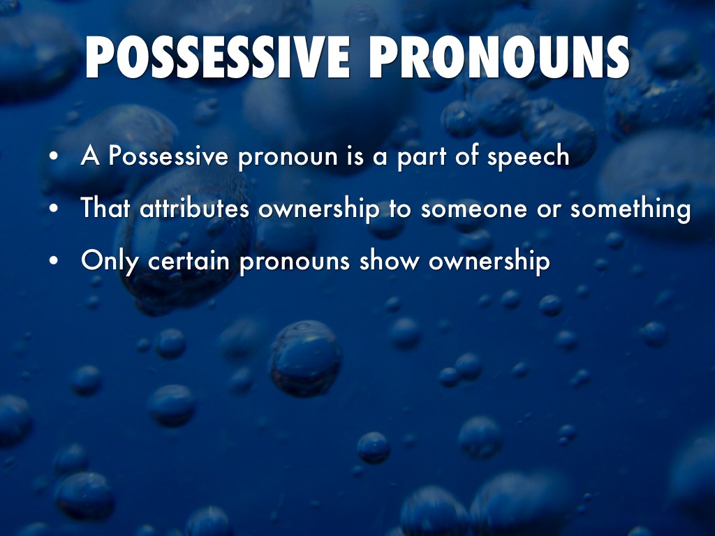 Possessive pronouns are words that stand in place of nouns called pronouns.