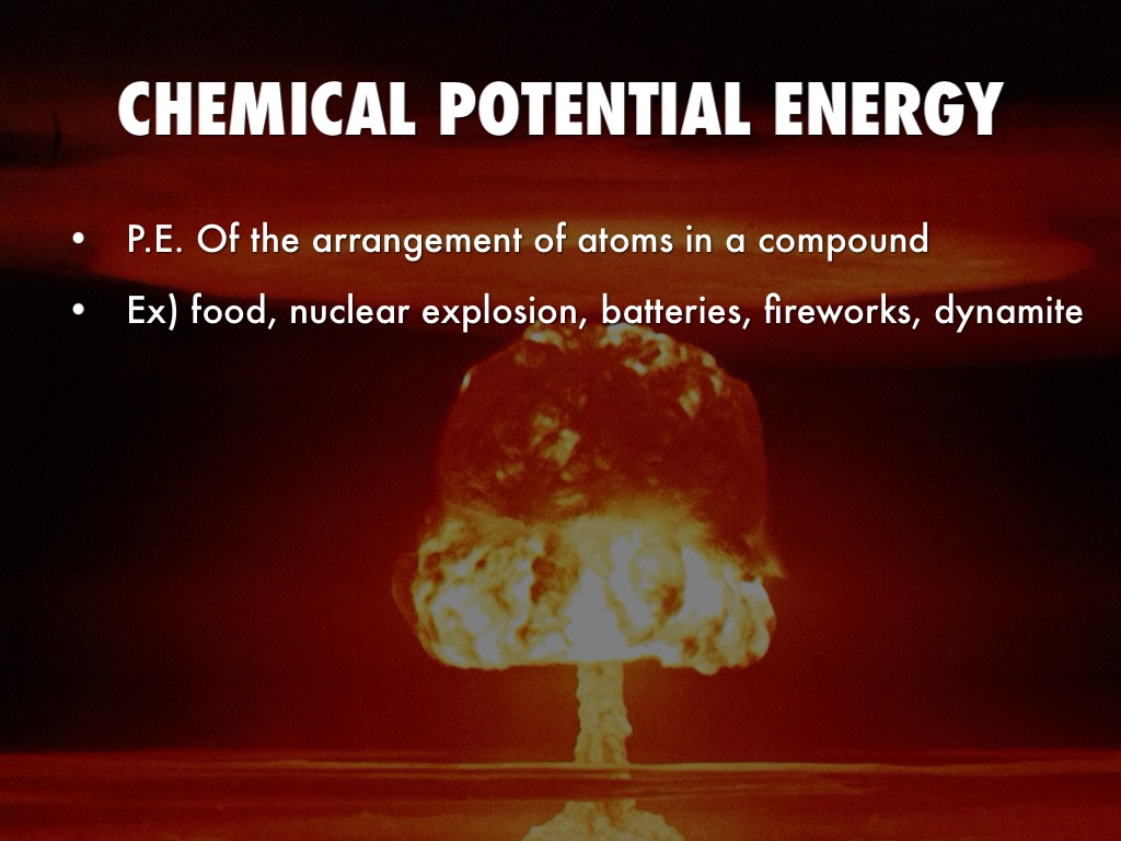 Ex) food, nuclear explosion, batteries, fireworks, dynamite