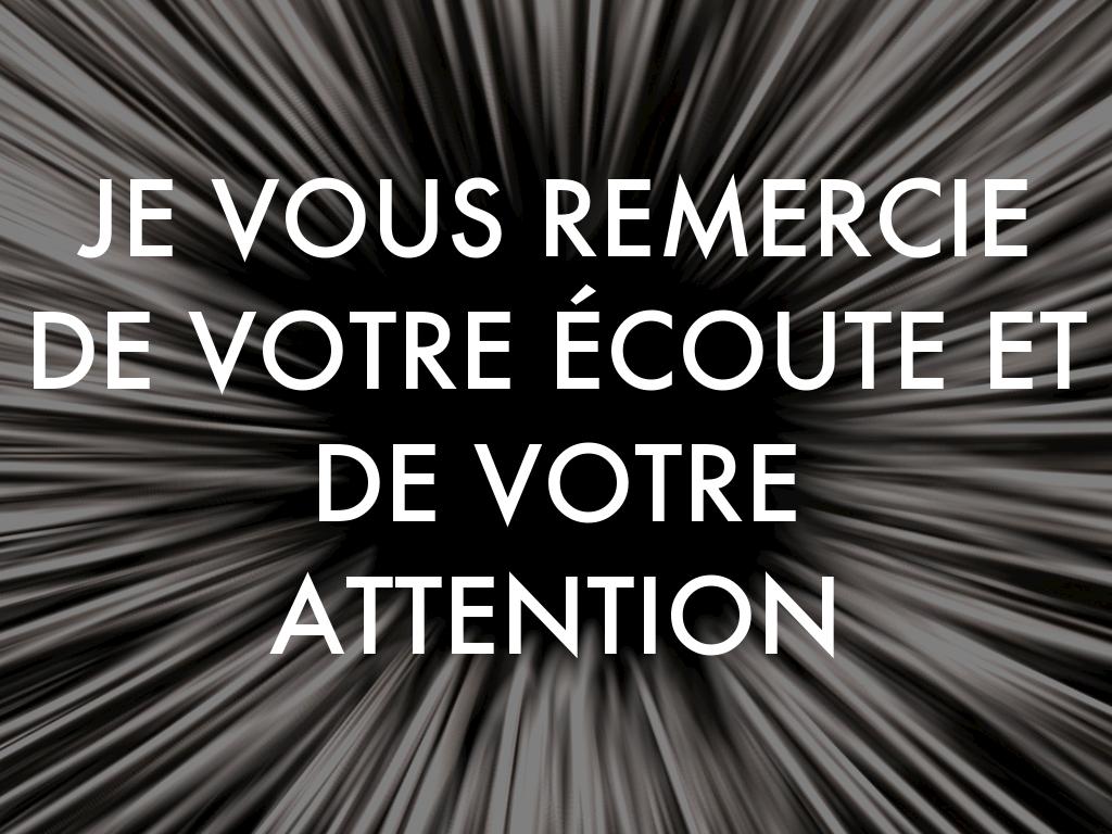 JE VOUS REMERCIE DE VOTRE ÉCOUTE ET DE VOTRE ATTENTION