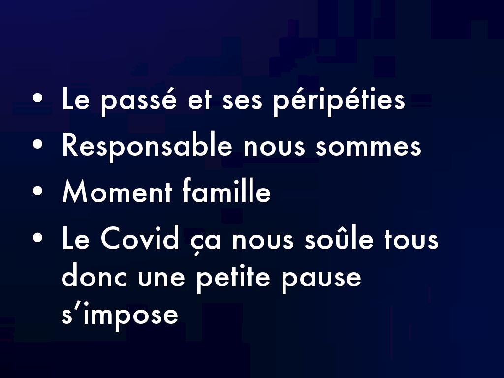 • Le Covid ça nous soûle tous donc une petite pause s’impose