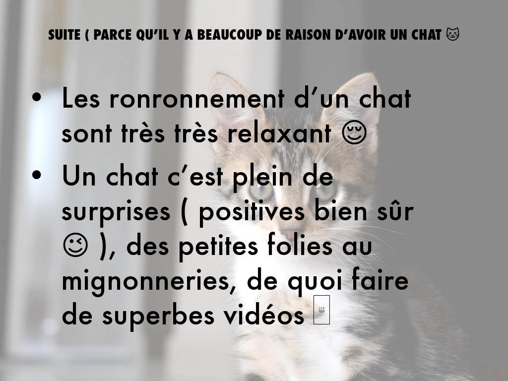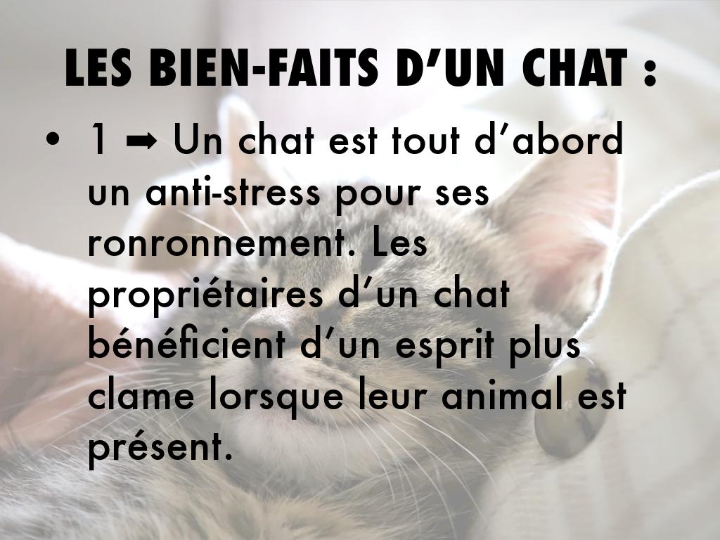 1 ➡️ Un chat est tout d’abord un anti-stress pour ses ronronnement. Les propriétaires d’un chat bénéficient d’un esprit plus clame lorsque leur animal est présent.