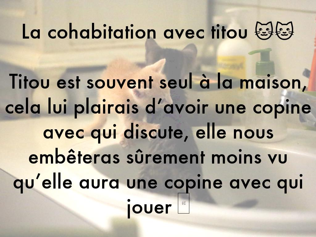 Titou est souvent seul à la maison, cela lui plairais d’avoir une copine avec qui discute, elle nous embêteras sûrement moins vu qu’elle aura une copine avec qui jouer 🥰