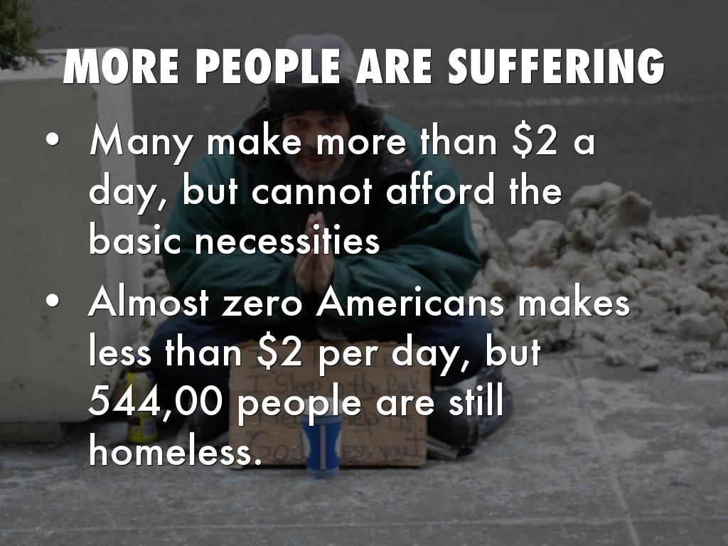 Almost zero Americans makes less than $2 per day, but 544,00 people are still homeless.