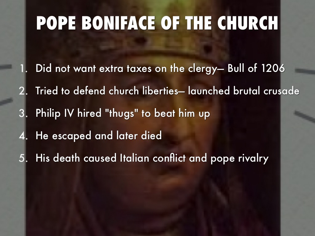 - Fought with Boniface — sent people to kill him