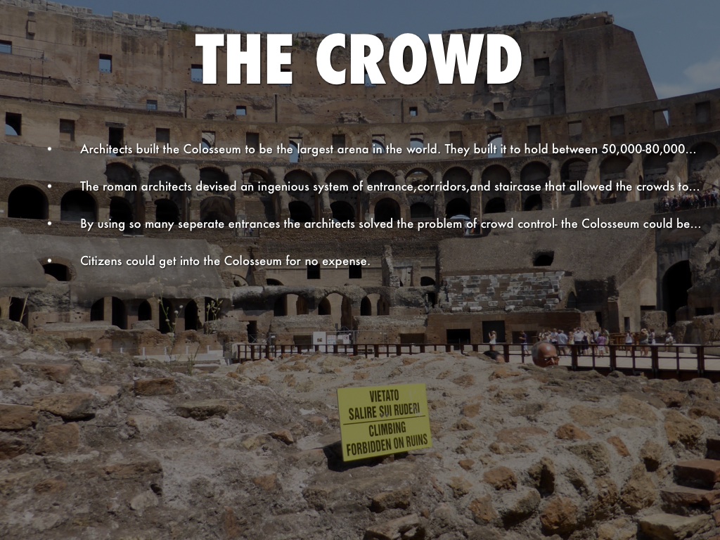 The roman architects devised an ingenious system of entrance,corridors,and staircase that allowed the crowds to enter and exit the Colosseum quickly and easily.