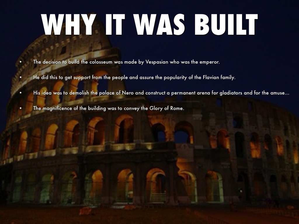 Architects built the Colosseum to be the largest arena in the world. They built it to hold between 50,000-80,000 people.