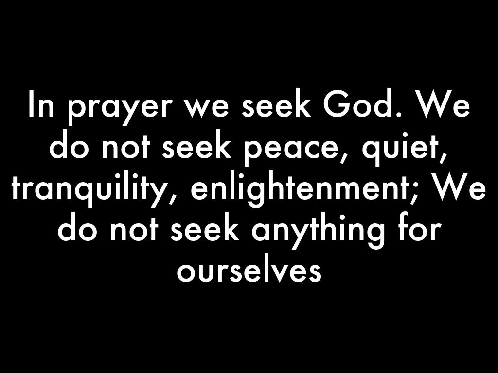 In prayer we seek God. We do not seek peace, quiet, tranquility, enlightenment; We do not seek anything for ourselves