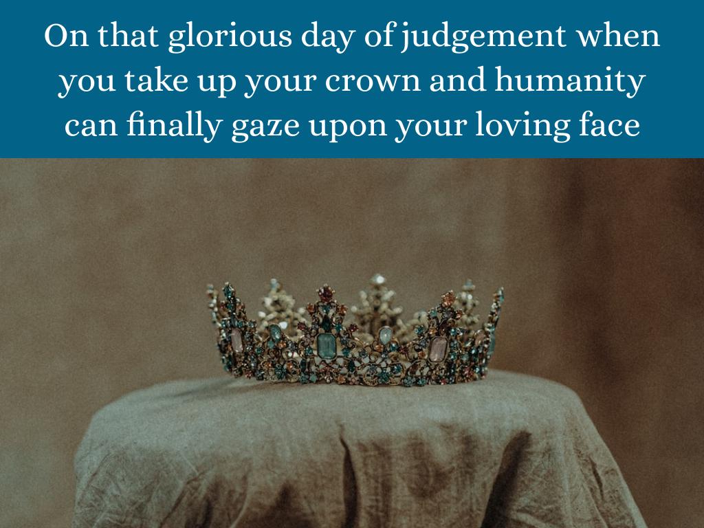 On that glorious day of judgement when you take up your crown and humanity can finally gaze upon your loving face