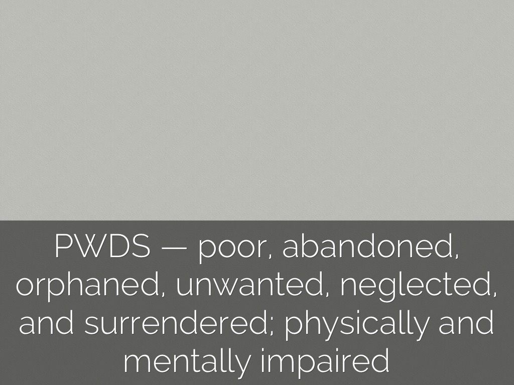 PWDS — poor, abandoned, orphaned, unwanted, neglected, and surrendered; physically and mentally impaired