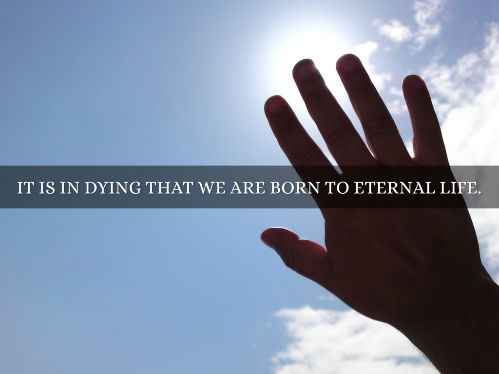 IT IS IN DYING THAT WE ARE BORN TO ETERNAL LIFE.
