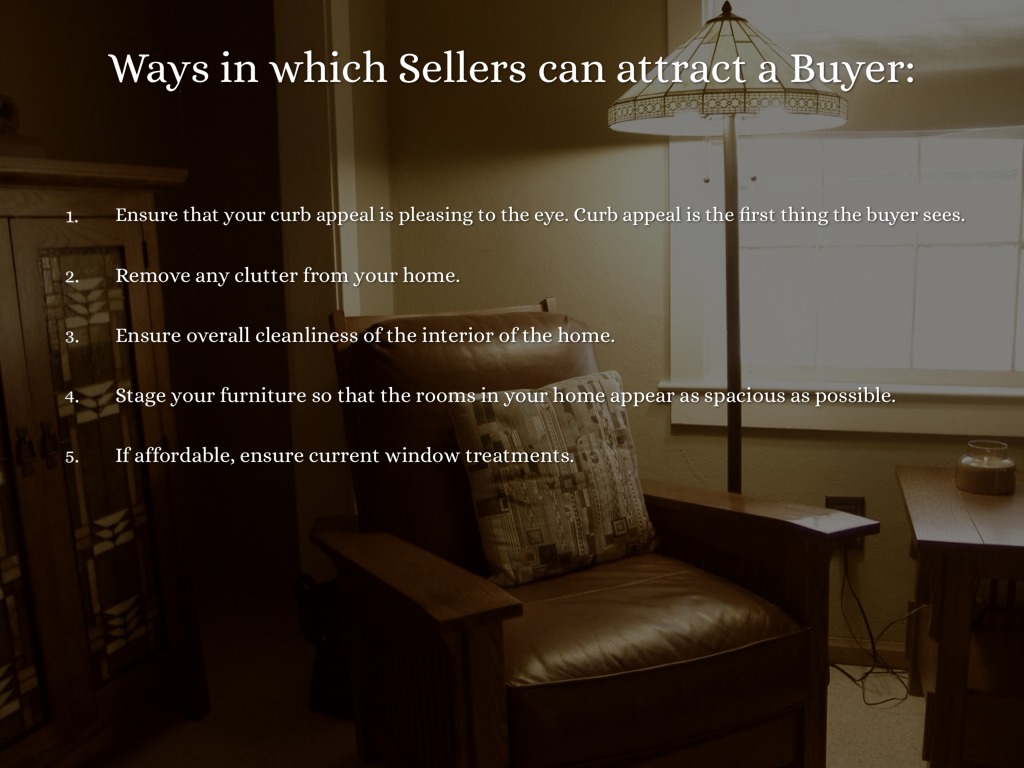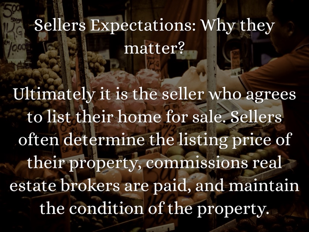 Ultimately it is the seller who agrees to list their home for sale. Sellers often determine the listing price of their property, commissions real estate brokers are paid, and maintain the condition of the property.