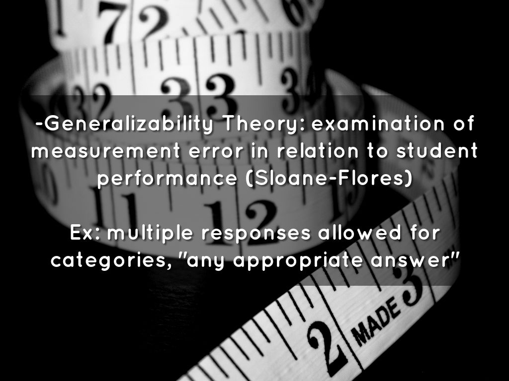 -Generalizability Theory: examination of measurement error in relation to student performance (Sloane-Flores)
