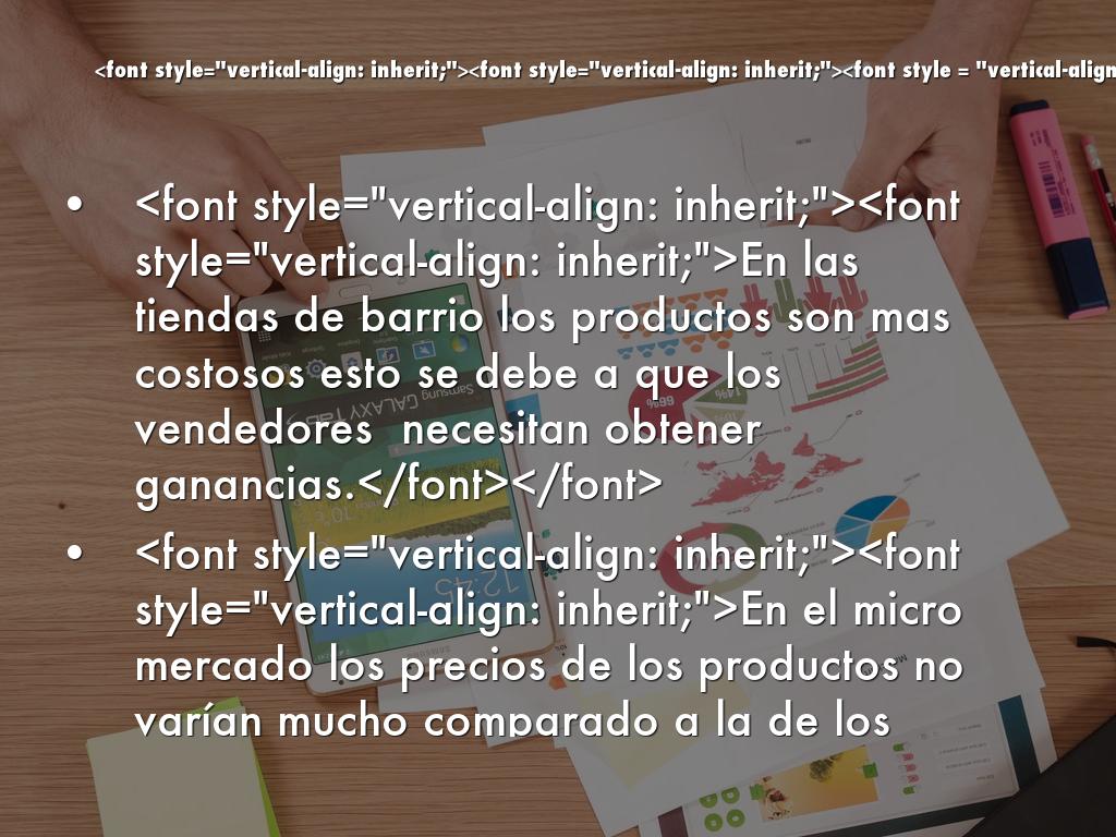 • En el micro mercado los precios de los productos no varían mucho comparado a la de los supermercados, esto se debe por que los dueños de estos negocios adquieren el producto al por mayor y es ahi donde sacan provecho al producto y por eso no son muy costosos.