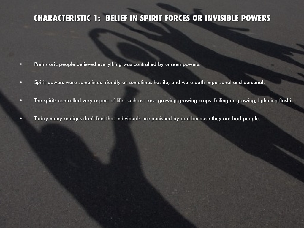 CHARACTERISTIC 1: BELIEF IN SPIRIT FORCES OR INVISIBLE POWERS