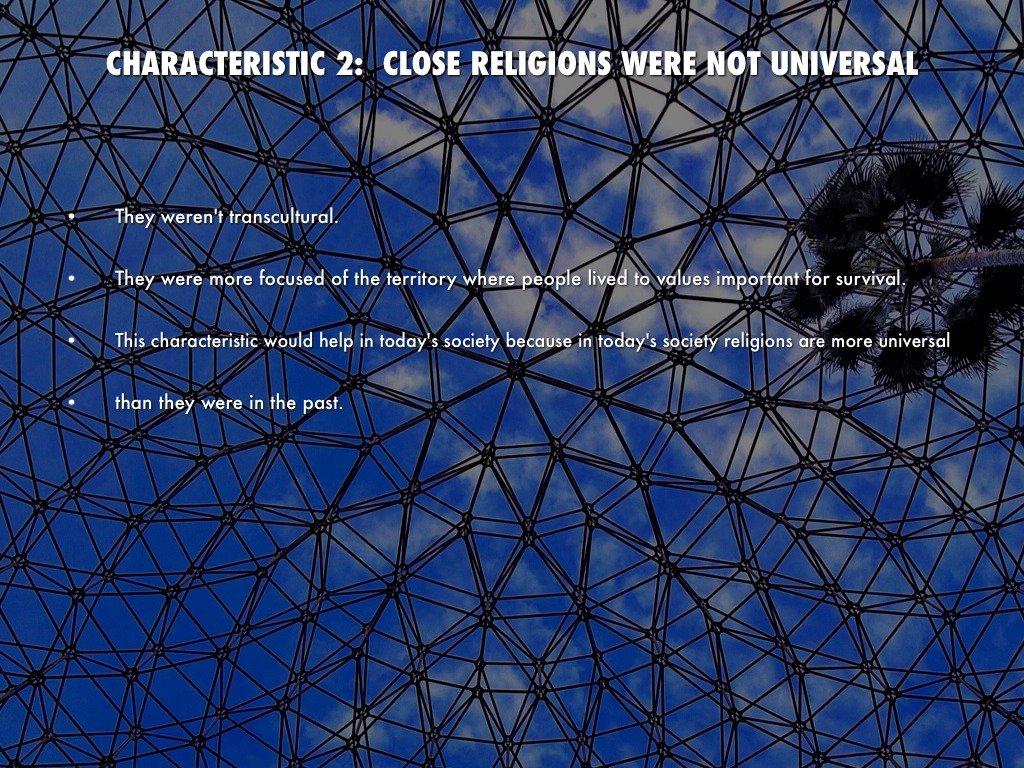 CHARACTERISTIC 2: CLOSE RELIGIONS WERE NOT UNIVERSAL