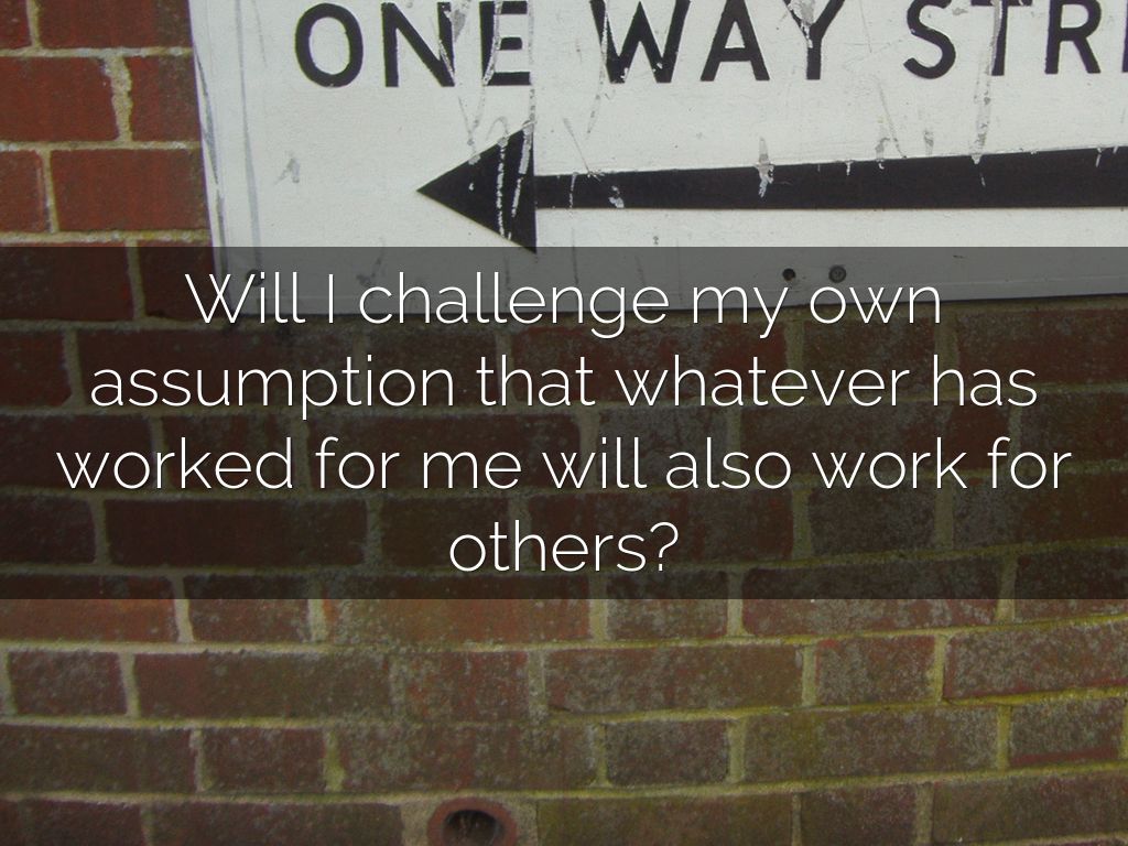 Will I challenge my own assumption that whatever has worked for me will also work for others?