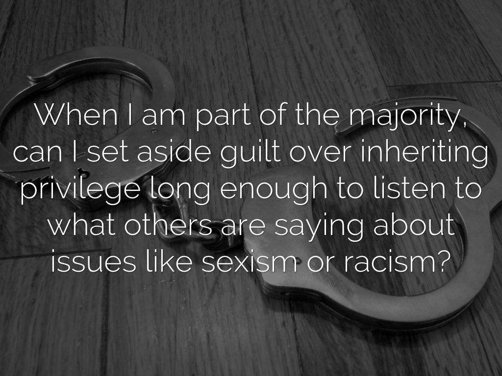 When I am part of the majority, can I set aside guilt over inheriting privilege long enough to listen to what others are saying about issues like sexism or racism?