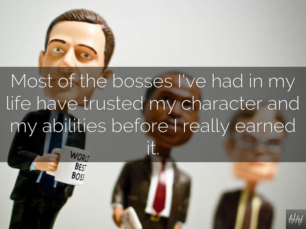 Most of the bosses I've had in my life have trusted my character and my abilities before I really earned it.