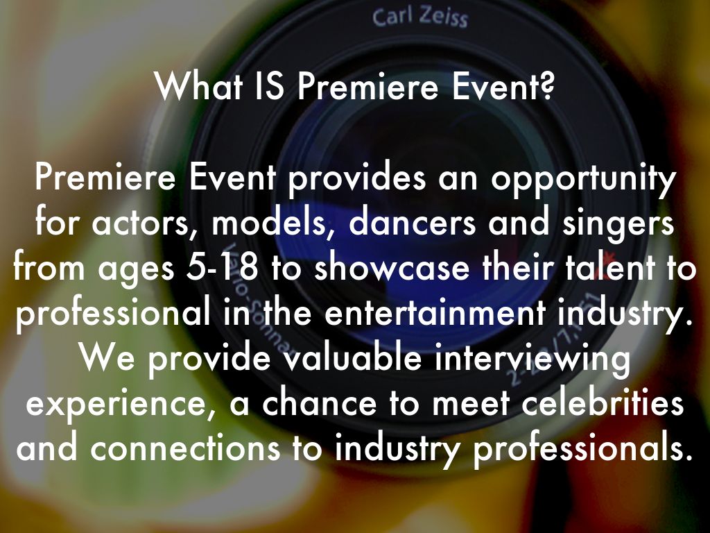 Premiere Event provides an opportunity for actors, models, dancers and singers from ages 5-18 to showcase their talent to professional in the entertainment industry. We provide valuable interviewing experience, a chance to meet celebrities and connections to industry professionals.