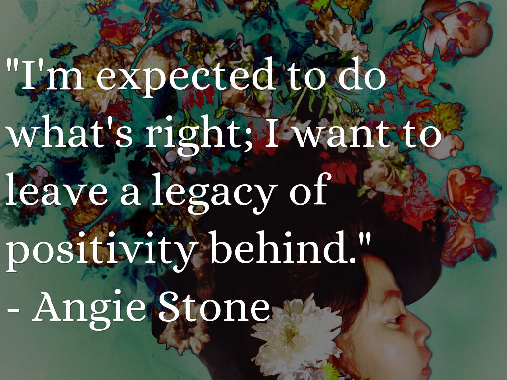 "I'm expected to do what's right; I want to leave a legacy of positivity behind."