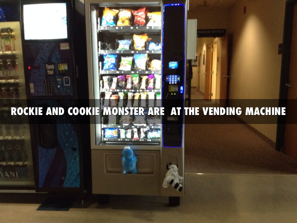 ROCKIE AND COOKIE MONSTER ARE AT THE VENDING MACHINE