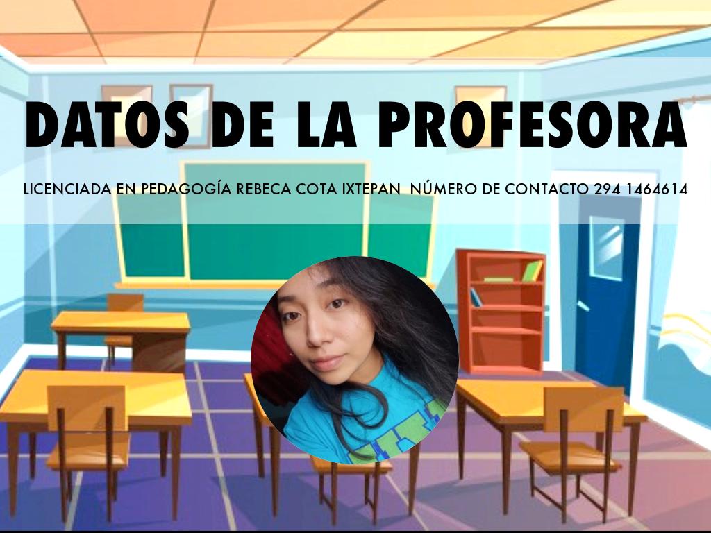 LICENCIADA EN PEDAGOGÍA REBECA COTA IXTEPAN NÚMERO DE CONTACTO 294 1464614