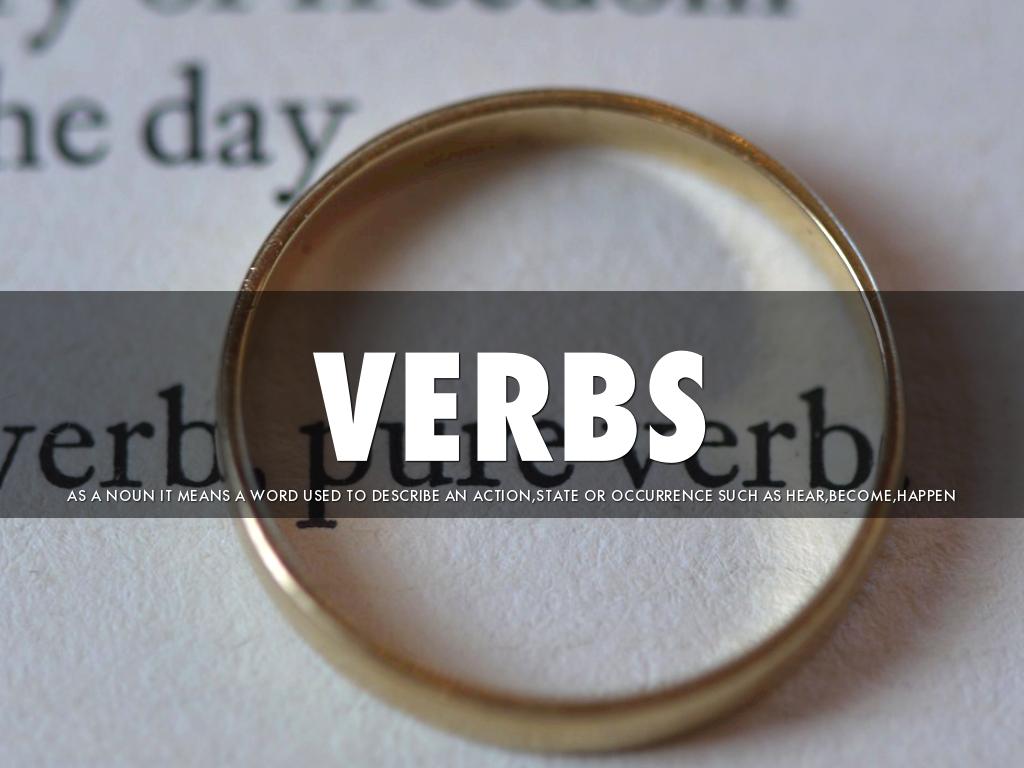 AS A NOUN IT MEANS A WORD USED TO DESCRIBE AN ACTION,STATE OR OCCURRENCE SUCH AS HEAR,BECOME,HAPPEN