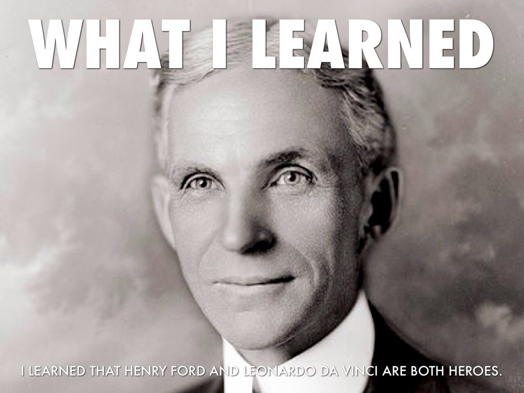 I LEARNED THAT HENRY FORD AND LEONARDO DA VINCI ARE BOTH HEROES.