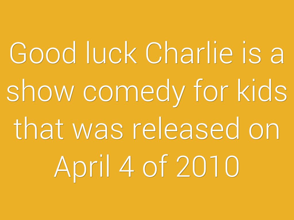 Good luck Charlie is a show comedy for kids that was released on April 4 of 2010