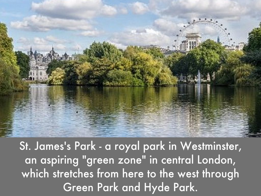 St. James's Park - a royal park in Westminster, an aspiring "green zone" in central London, which stretches from here to the west through Green Park and Hyde Park.