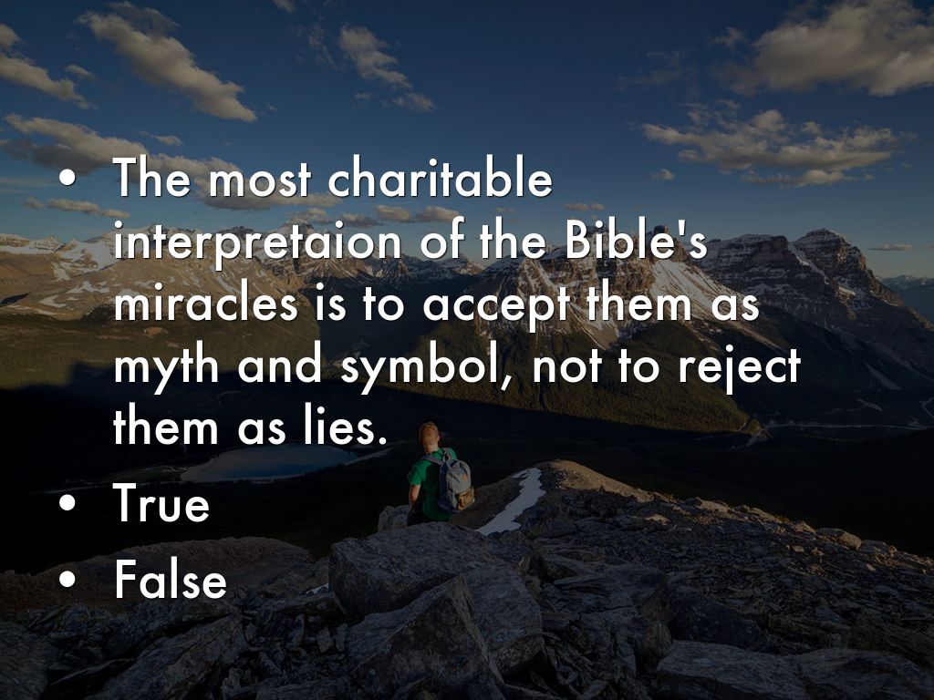 • The most charitable interpretaion of the Bible's miracles is to accept them as myth and symbol, not to reject them as lies.