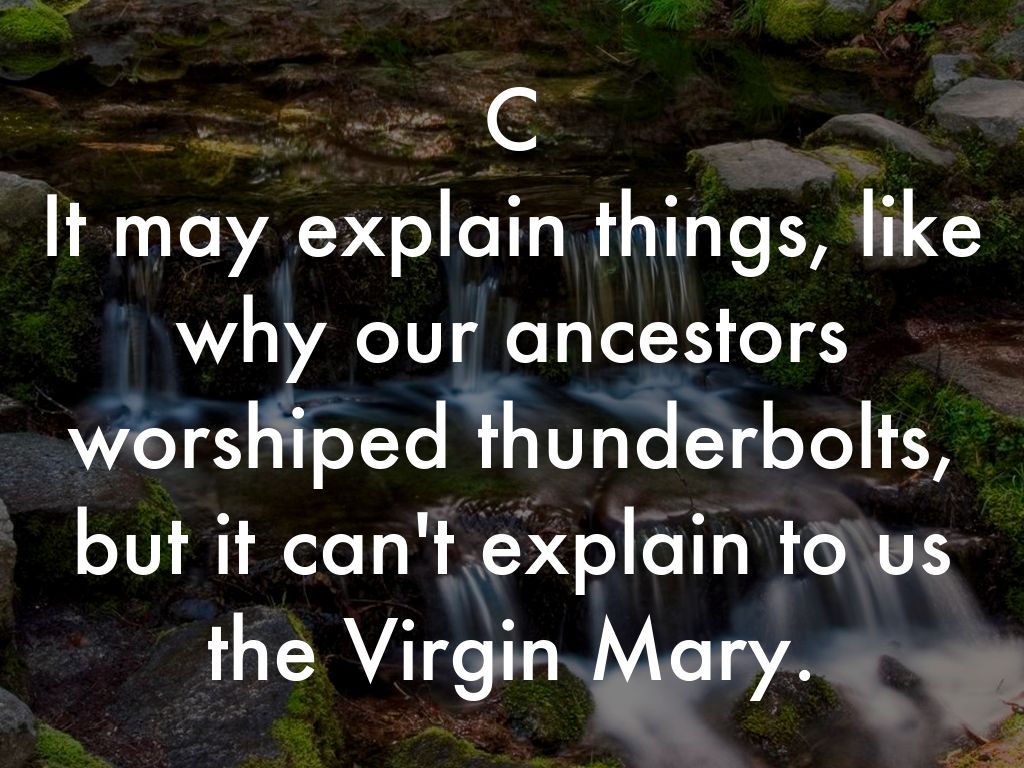 It may explain things, like why our ancestors worshiped thunderbolts, but it can't explain to us the Virgin Mary.