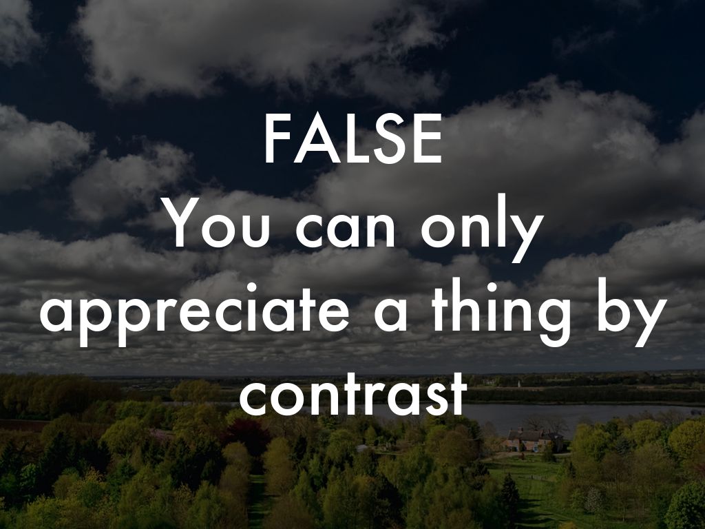 You can only appreciate a thing by contrast