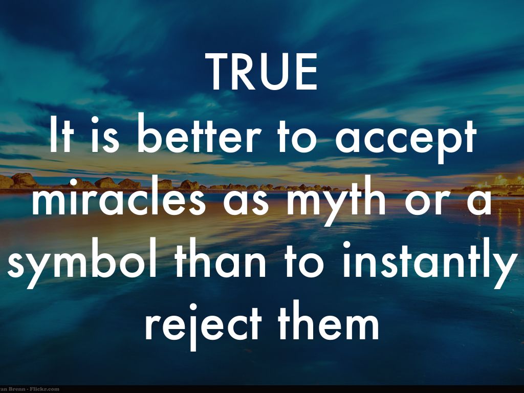 It is better to accept miracles as myth or a symbol than to instantly reject them