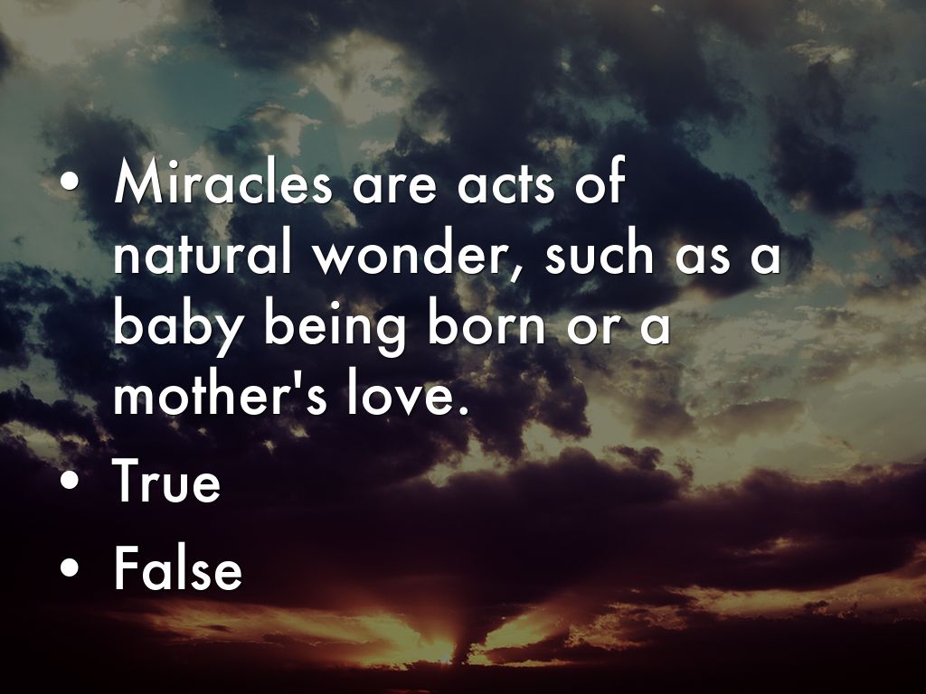 • Miracles are acts of natural wonder, such as a baby being born or a mother's love.