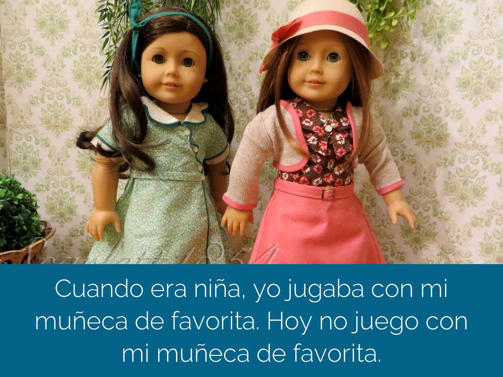 Cuando era niña, yo jugaba con mi muñeca de favorita. Hoy no juego con mi muñeca de favorita.