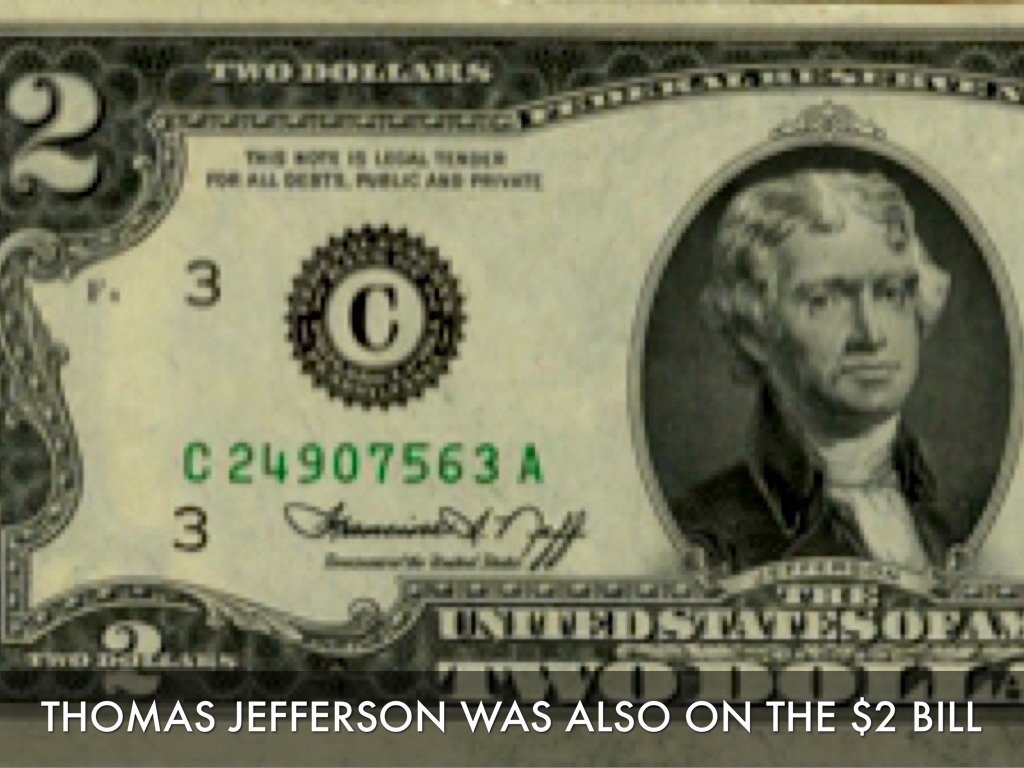 THOMAS JEFFERSON WAS ALSO ON THE $2 BILL